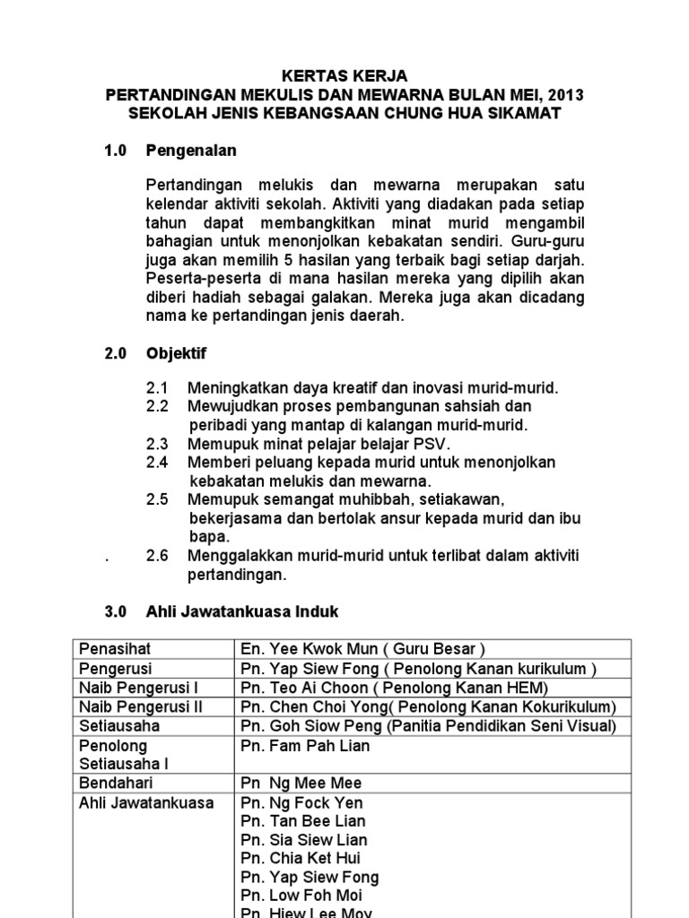 Kertas Kerja Pertandingan Melukis Dan Mewarna