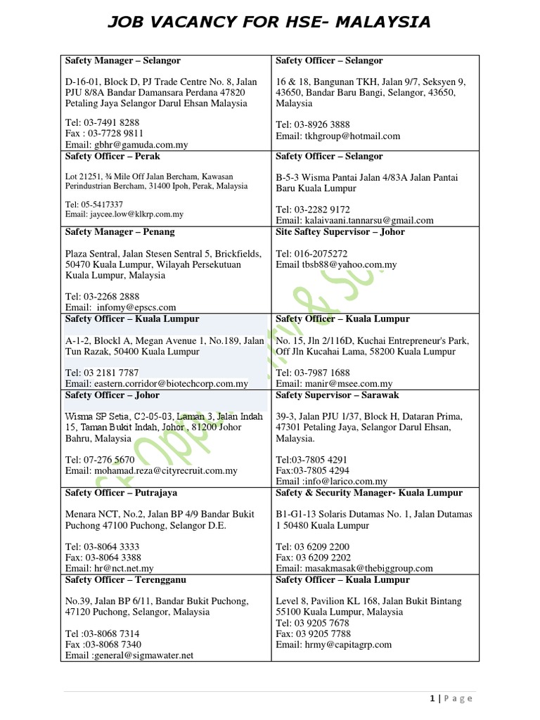 Job Vacancy For Hse Malaysia 06062015