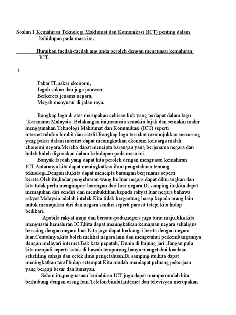 Kepentingan Teknologi Maklumat Dan Komunikasi Karangan Spm