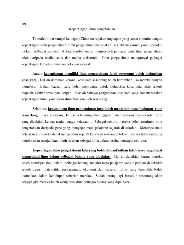 Contoh Karangan Cemerlang Spm Kepentingan Ilmu Dalam Kehidupan