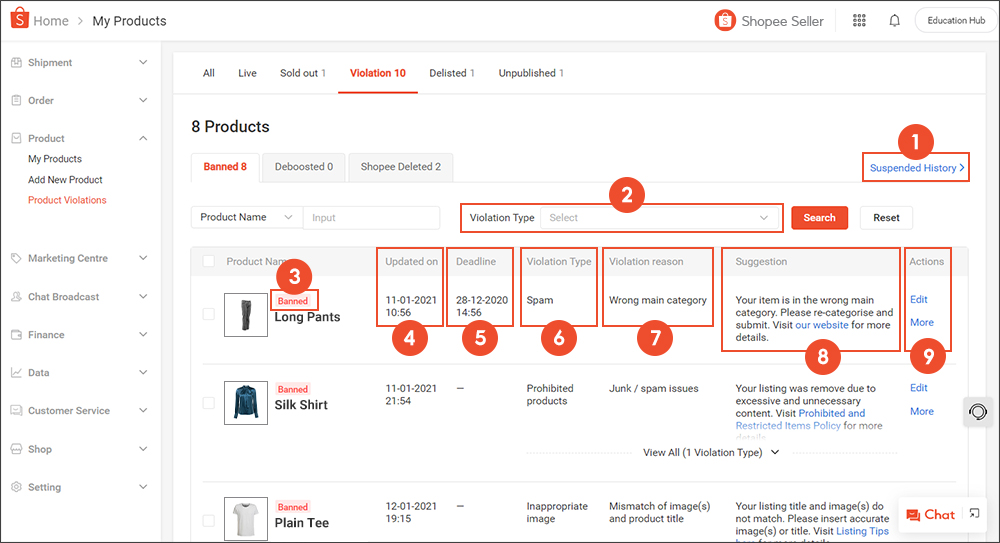 Checking And Rectifying Banned Listings Shopee Sg Seller Education Hub