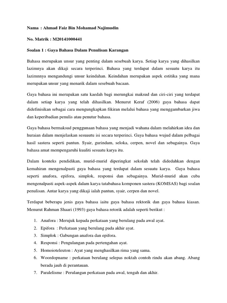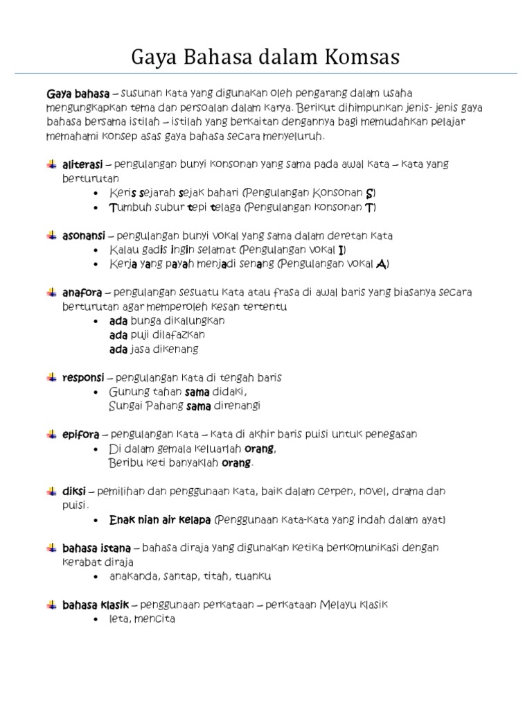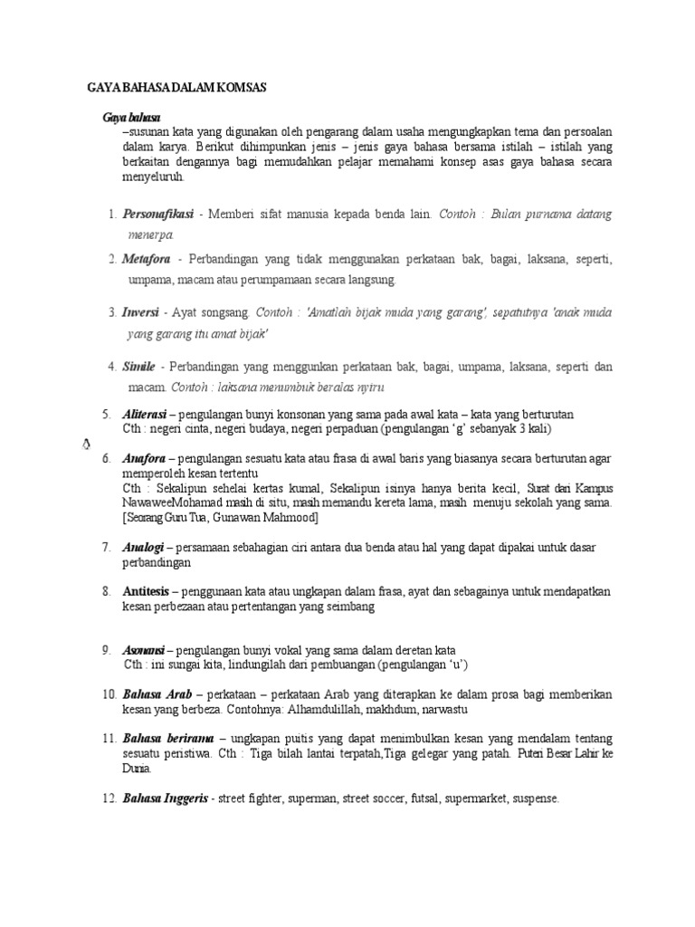 Nota Gaya Bahasa Dalam Komsas 2017 Tingkatan 3