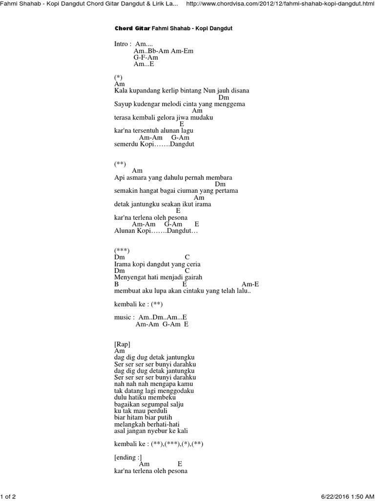 Fahmi Shahab Kopi Dangdut Chord Gitar Dangdut Lirik Lagu At Chordvisa