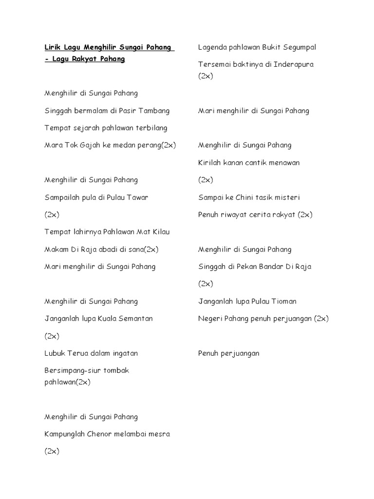 Lirik Lagu Menghilir Sungai Pahang Pdf