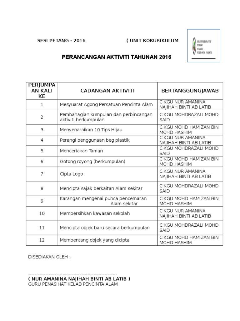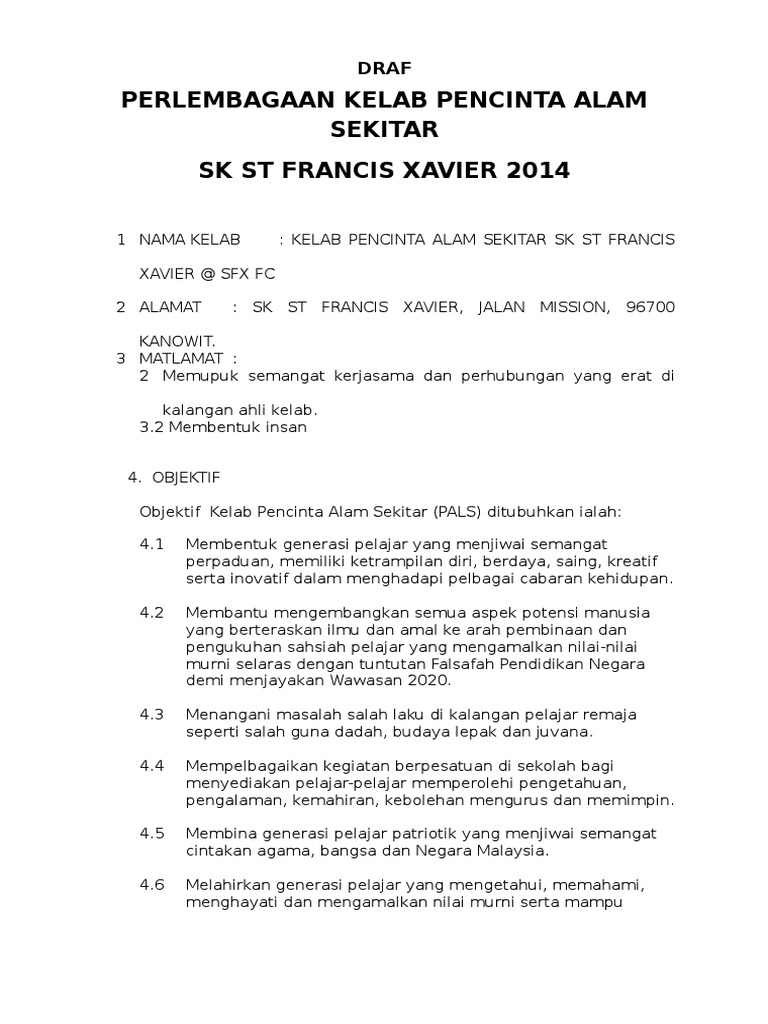 Draf Perlembagaan Dan Draf Aktiviti Utama Kelab Pencinta Alam Sekitar