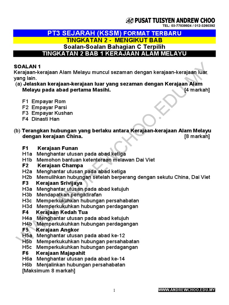 Tingkatan 2 Sejarah Contoh Soalan Bahagian C Kssm 2019