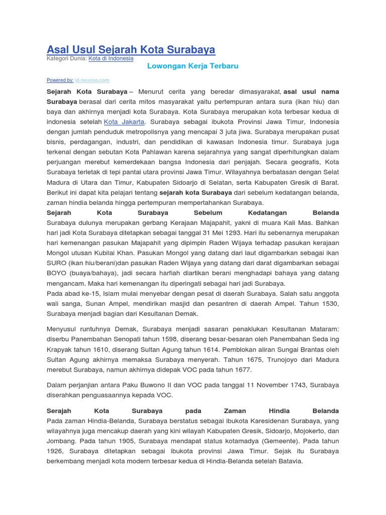 Asal Usul Kota Surabaya Beserta Ulasannya 2021 Poskata