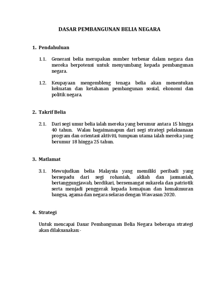 Pdf Dasar Pembangunan Belia Negara Nabil Izzat Academia Edu