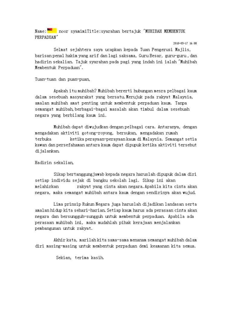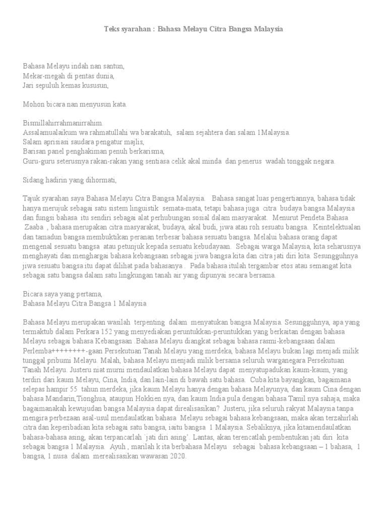 220432650 Teks Syarahan Docx Perpaduan Asas Kecemerlangan Negara Yang Mulia Tuan Pengerusi Majlis Barisan Panel Hakim Yang Adil Lagi Bijaksana Course Hero