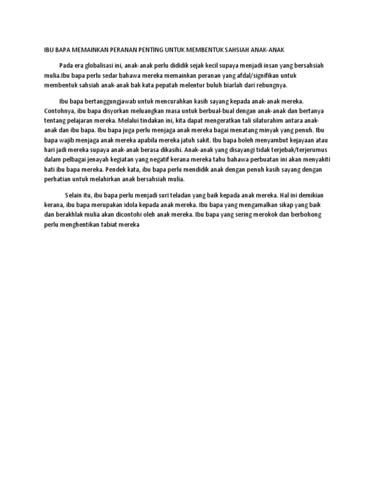 Peranan Ibu Bapa Dalam Membentuk Sahsiah Anak Anak Karangan Spm Malayopop
