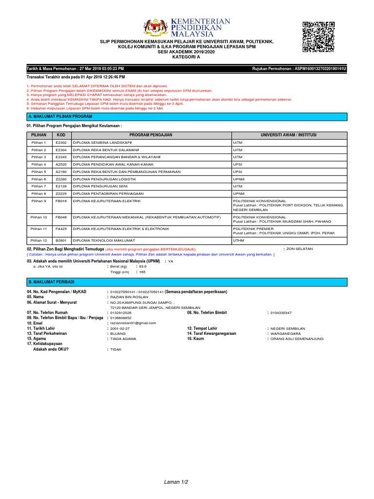 Carian maklumat mengenai senarai penuh kursus pengajian asasifoundationtamhidi di institut Pengajian Tinggi Awam Universiti Awam aliran sains dan aliran sastera di bawah seliaan Kementerian Pengajian Tinggi. Syarat kelayakan memohon program diploma di IPTAUA Malaysia adalah berwarganegara Malaysia lulus SPM atau setaraf dengan minimum 5 kepujian atau lebih serta wajib kepujian dalam Bahasa Malaysia.