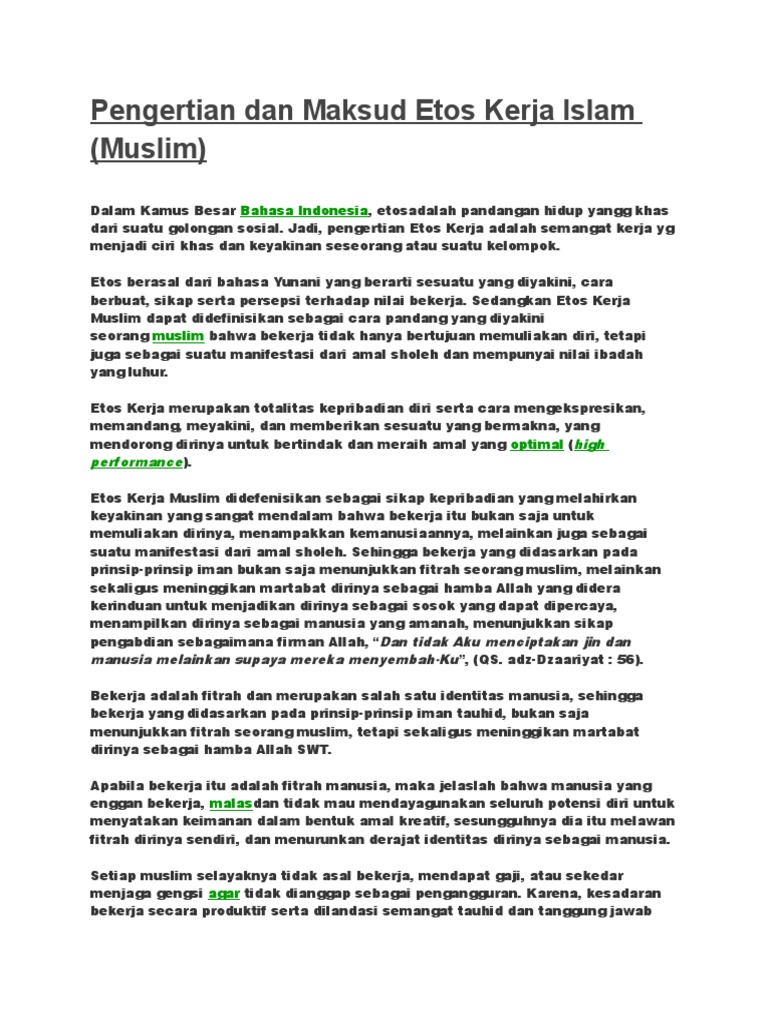 Pengertian Dan Maksud Etos Kerja Islam