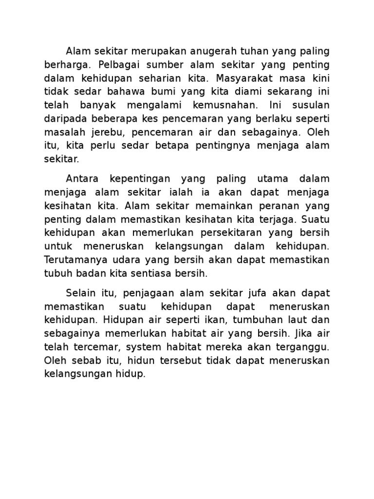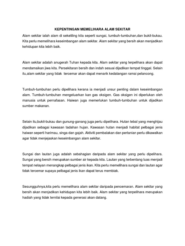 Karangan Kepentingan Menjaga Alam Sekitar Pdf Document