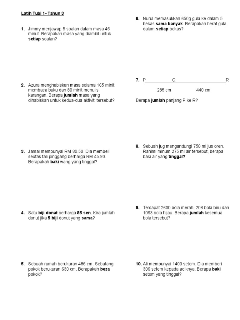 Latihan Matematik Tahun 3 Kelas Matematik Cikgu Kj Facebook