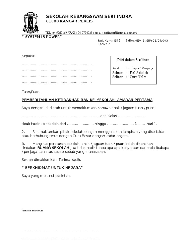 Format Surat Amaran Terakhir Untuk Ketidakhadiran Ke Sekolah