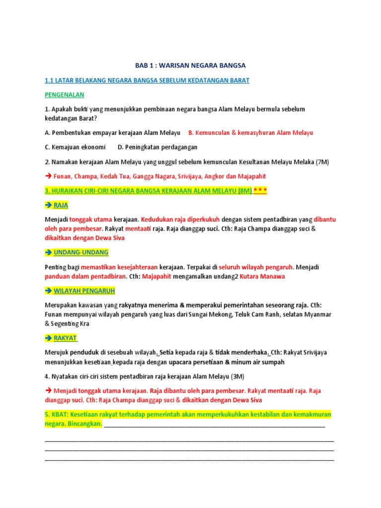 Bab 1 Warisan Negara Bangsa Spm Agile