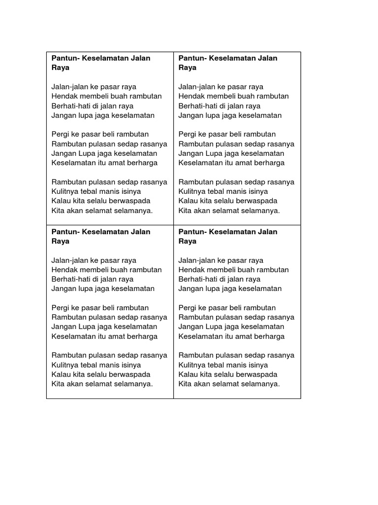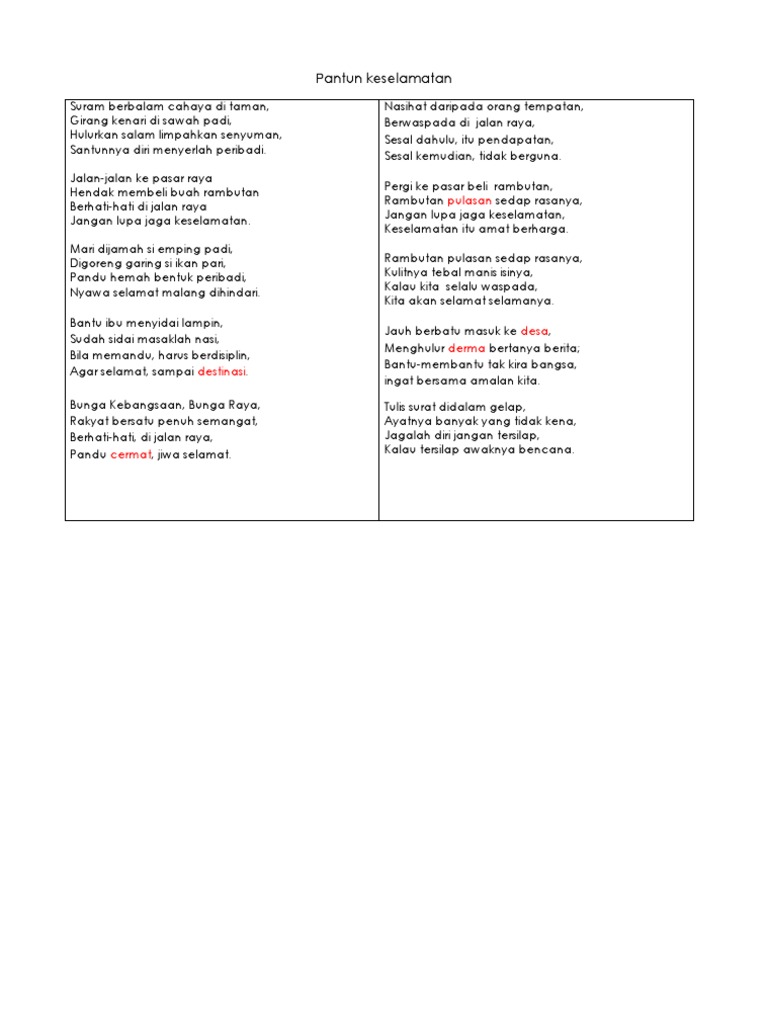 Pantun Keselamatan Jalan Raya Ejercicios De Bahasa Melayu Bm Online O Para Imprimir Panduan Keselamatan Jalan Raya 21 Jahkurr