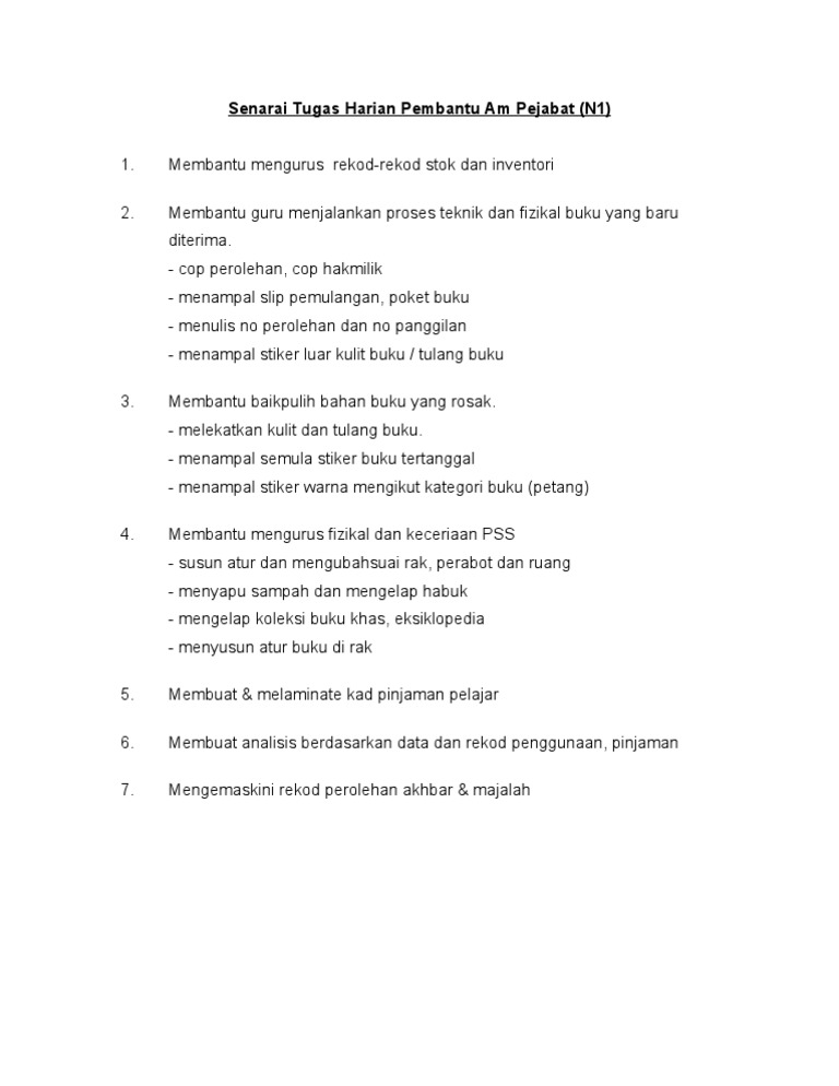 Senarai Tugas Harian Pembantu Am Pejabat