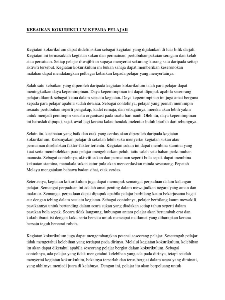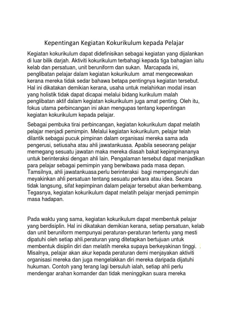 Kepentingan Kegiatan Kokurikulum Di Sekolah Pdf